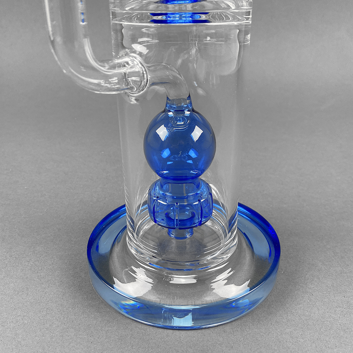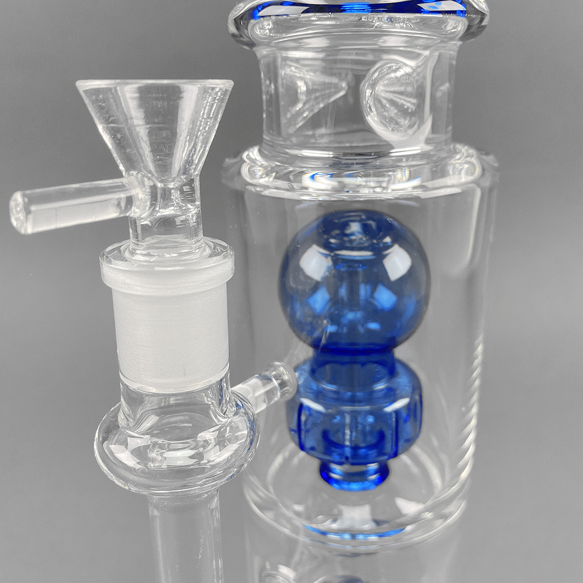 Ein weiteres Highlight der 'Blue Hour' ist der trichterförmige Kopf für Kräuter, der mit einem großen Durchlass ausgestattet ist. Für optimalen Genuss empfiehlt sich ein 12 mm Einhängesiebchen. Dank des Lift-off-Systems gibt es kein Kickloch, was bedeutet, dass du beim letzten Hit einfach den Kopf hochziehen kannst – ganz ohne verbrannte Finger, dank des breiten Griffs, der das Handling kinderleicht macht. Der massive Rundfuß sorgt für Stabilität, sodass du dich ganz auf das Relaxen konzentrieren kannst.