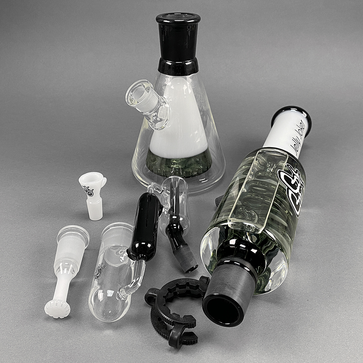 Edle und limitierte 5 mm Luxusbong von Jelly Joker, eigens für den Kinofilm "Fette Kumpelz" angefertigt und offizielle Bong zur Kiffer-Komödie. Der "Fette Kumpel" besteht aus insgesamt 5 Teilen.