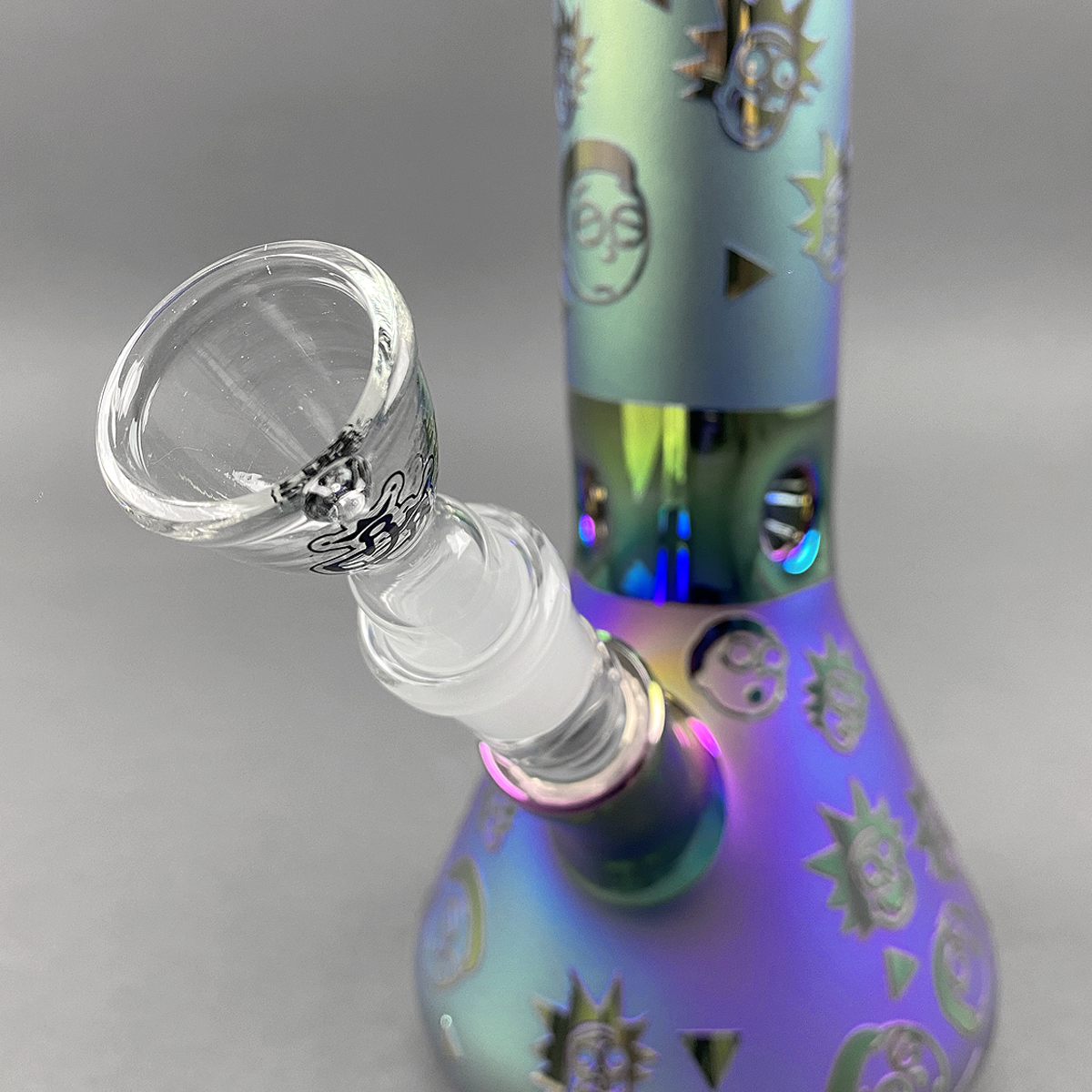 Die Jelly Joker Bong „Rimo“ ist mehr als nur ein Rauchgerät – sie ist ein Statement! Mit einer Höhe von 35 cm, 50 mm Durchemesser am Zugrohr und einer beeindruckenden Glasstärke von 7 mm aus hochwertigem Borosilikatglas strahlt sie nicht nur Langlebigkeit und Robustheit aus, sondern auch eine unverwechselbare Eleganz. Diese Bong ist für alle, die das Besondere lieben und beim Rauchen auf Stil und Qualität setzen. Ihre massiven Proportionen und das glänzende metallische Finish ziehen sofort alle Blicke auf sich, während die reliefartig aufgedruckten R&M Köpfe der Bong einen luxuriösen Touch verleihen.