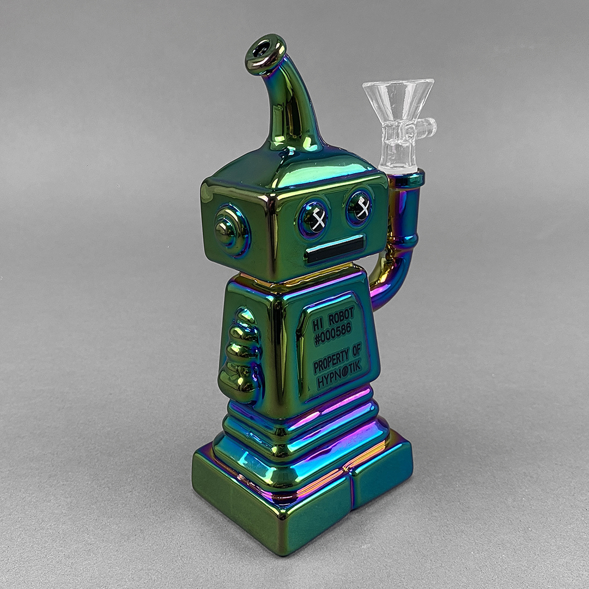 Mit der Hi Robot Glasbong 'Bender' Rainbow wird jeder Rauchmoment zum bunten Erlebnis – lass dich von ihrem Charme und ihrer Funktionalität verzaubern!