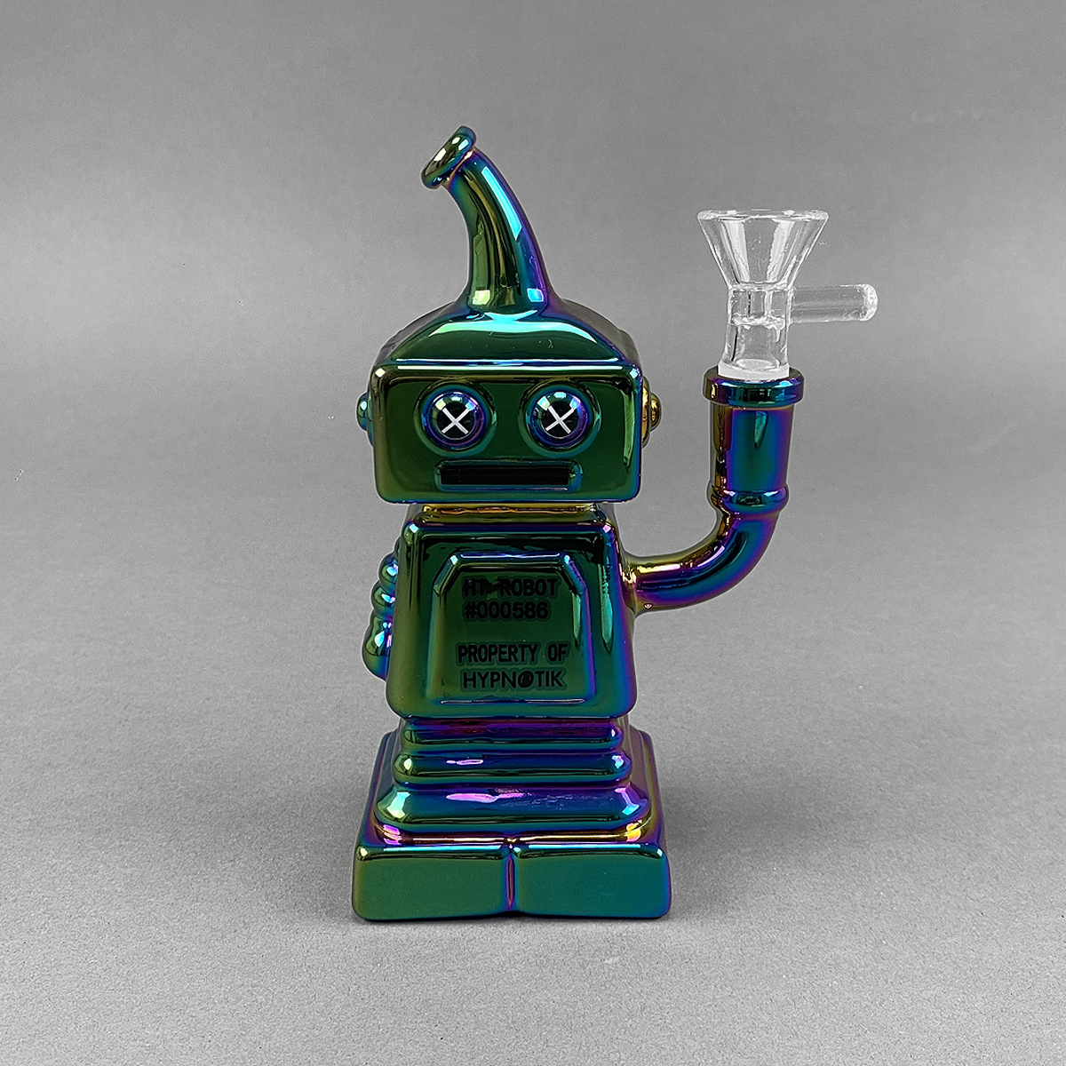 Die Hi Robot Glasbong 'Bender' Rainbow ist nicht nur ein Blickfang, sondern auch ein echtes Highlight in jeder Rauchsession! Mit ihrem witzigen, retro-inspirierten Roboterdesign bringt sie nicht nur Farbe in dein Leben, sondern auch eine Portion Spaß auf deinen Tisch. Die schimmernde, regenbogenfarbene Oberfläche hebt diese Bong von herkömmlichen Modellen ab und verleiht ihr einen sammelwürdigen Charakter, der garantiert alle Blicke auf sich zieht.
