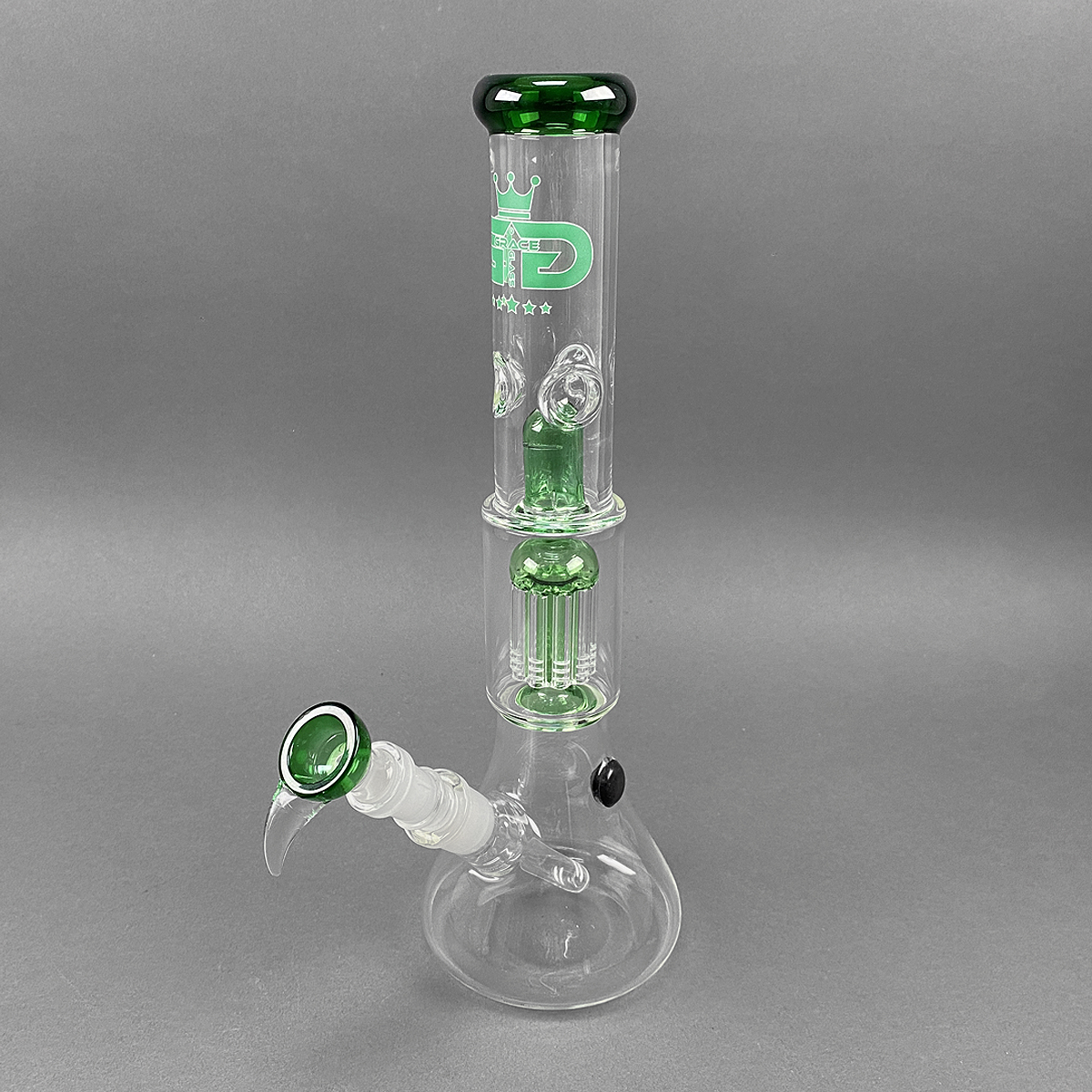 Die "Green Shotgun" von Grace Glass ist nicht nur ein Blickfang, sondern beeindruckt auch mit einigen fetten Features. Mit einem 8-Arm Percolator, Schlitzdiffusor und Eiskerben ausgestattet, verspricht diese Bong ein besonders mildes und sauberes Rauchverhalten. Der integrierte Splashguard sorgt dafür, dass deine Lippen stets trocken bleiben. Jetzt ist es an der Zeit für einen entspannten Zug!