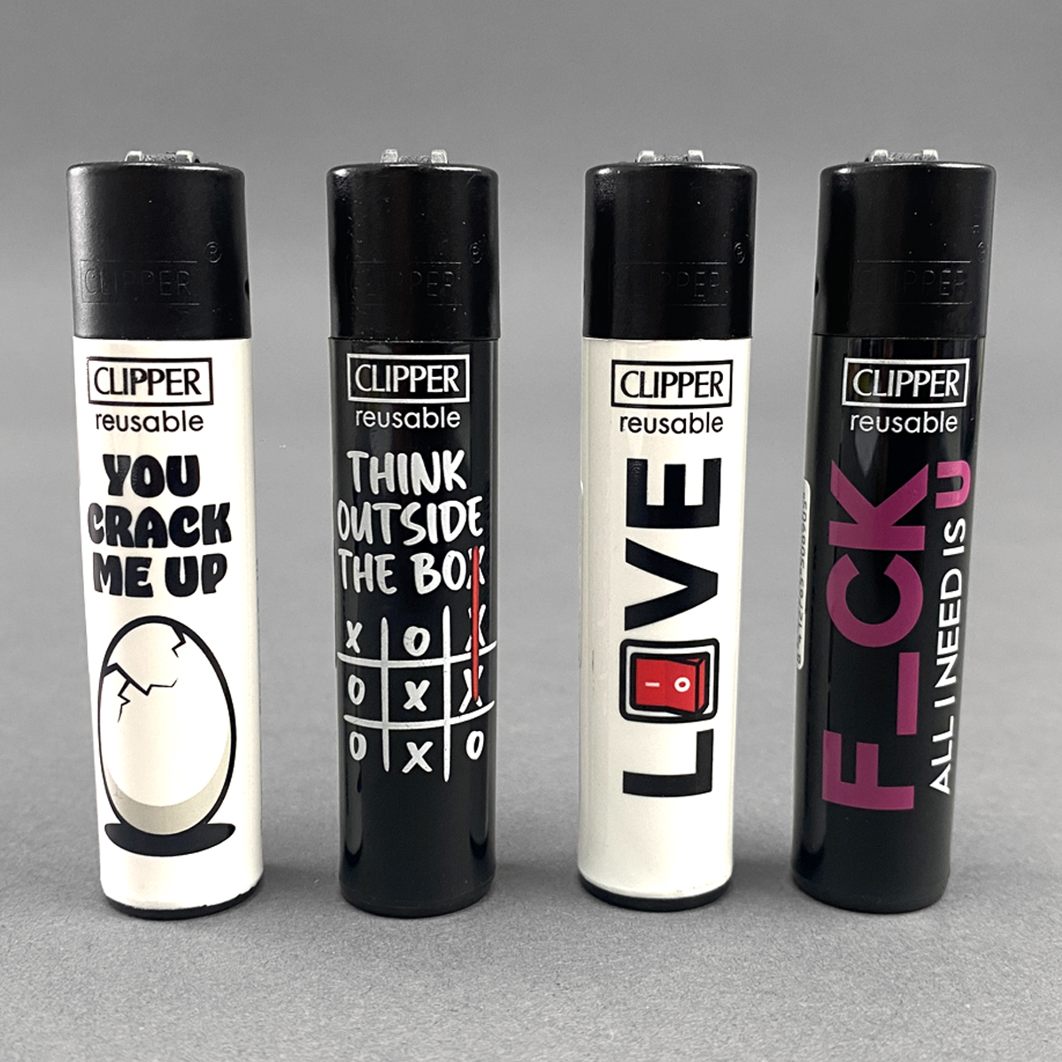 Stell dir vor: Du hast es in der Hand, das Feuerzeug – ein echtes Schmuckstück, das mit coolen Sprüchen daherkommt, wie „You Crack Me Up“, „Think Outside The Box“, „Love“ und dem frechen „F_ck All I Need Is U“. Diese Designs sind nicht nur zum Lachen, sie sind auch perfekt, um dein junges, witziges Ich zu repräsentieren!
