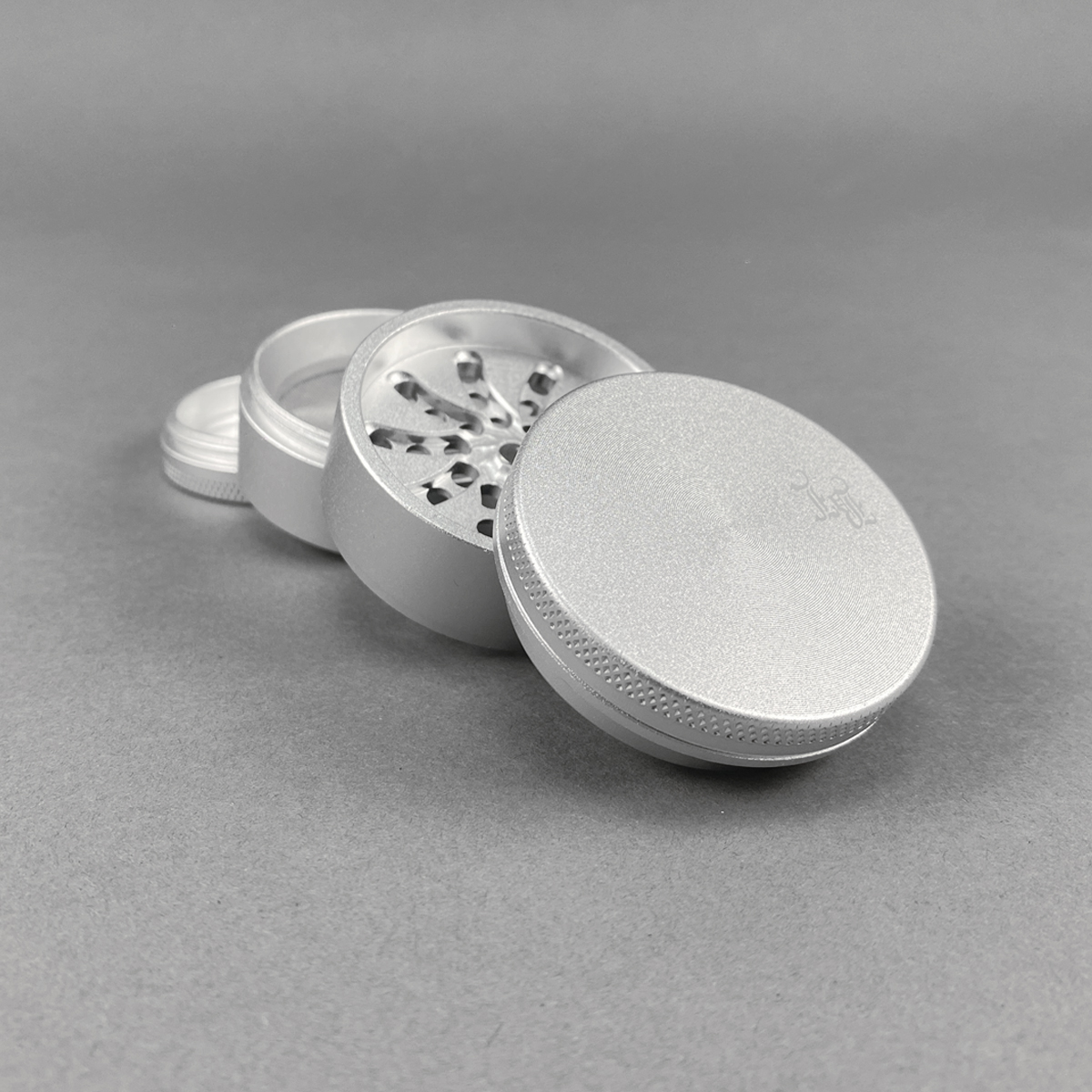 Mit einem Durchmesser von 53 mm und einer Höhe von 52 mm ist der 'Masher' kompakt genug, um ihn überallhin mitzunehmen. Zudem kommt er mit einem praktischen Pollensieb und einer Auffangkammer, damit du die wertvollen Pollenkristalle nicht verpasst. Und als ob das nicht genug wäre, wird der Grinder in verschiedenen, zufälligen Farben verschickt – eine kleine Überraschung für dich!