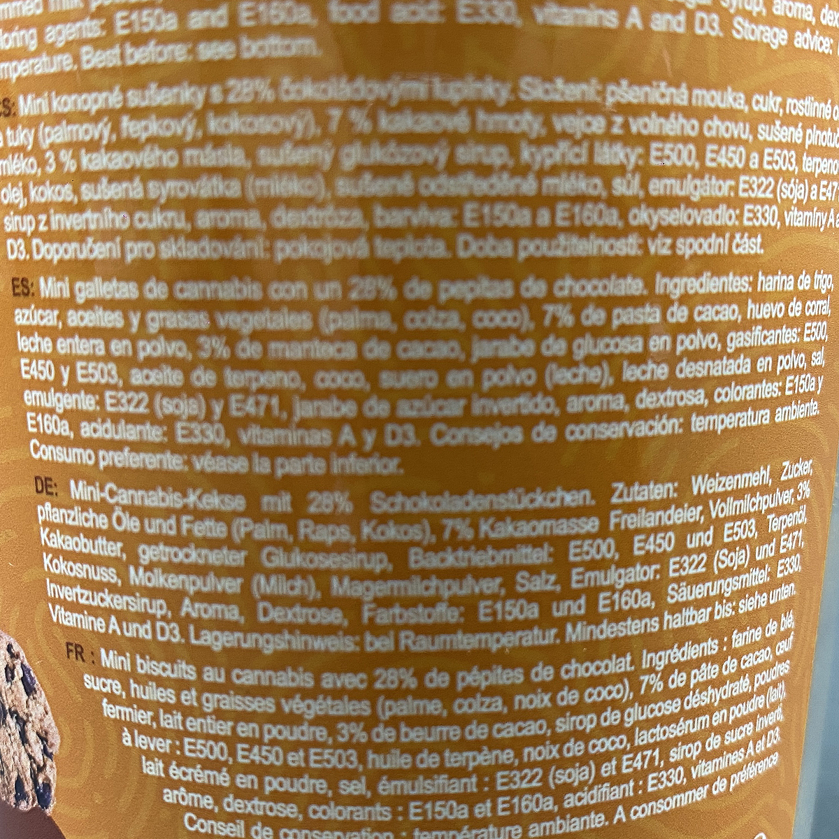 Die Cannabis Mini Choco Cookies werden mit größter Sorgfalt und einem besonderen Augenmerk auf Qualität und Frische hergestellt. Cannabis Bakehouse hat es sich zur Aufgabe gemacht, dir nicht nur köstliche Kekse zu bieten, sondern auch ein Produkt, das mit hochwertigem Terpenöl verfeinert ist. Dieses Öl stammt aus Cannabissamen und sorgt dafür, dass du den fantastischen Geschmack ohne CBD und ohne THC genießen kannst. So kannst du unbesorgt naschen und deine Geschmacksknospen verwöhnen.