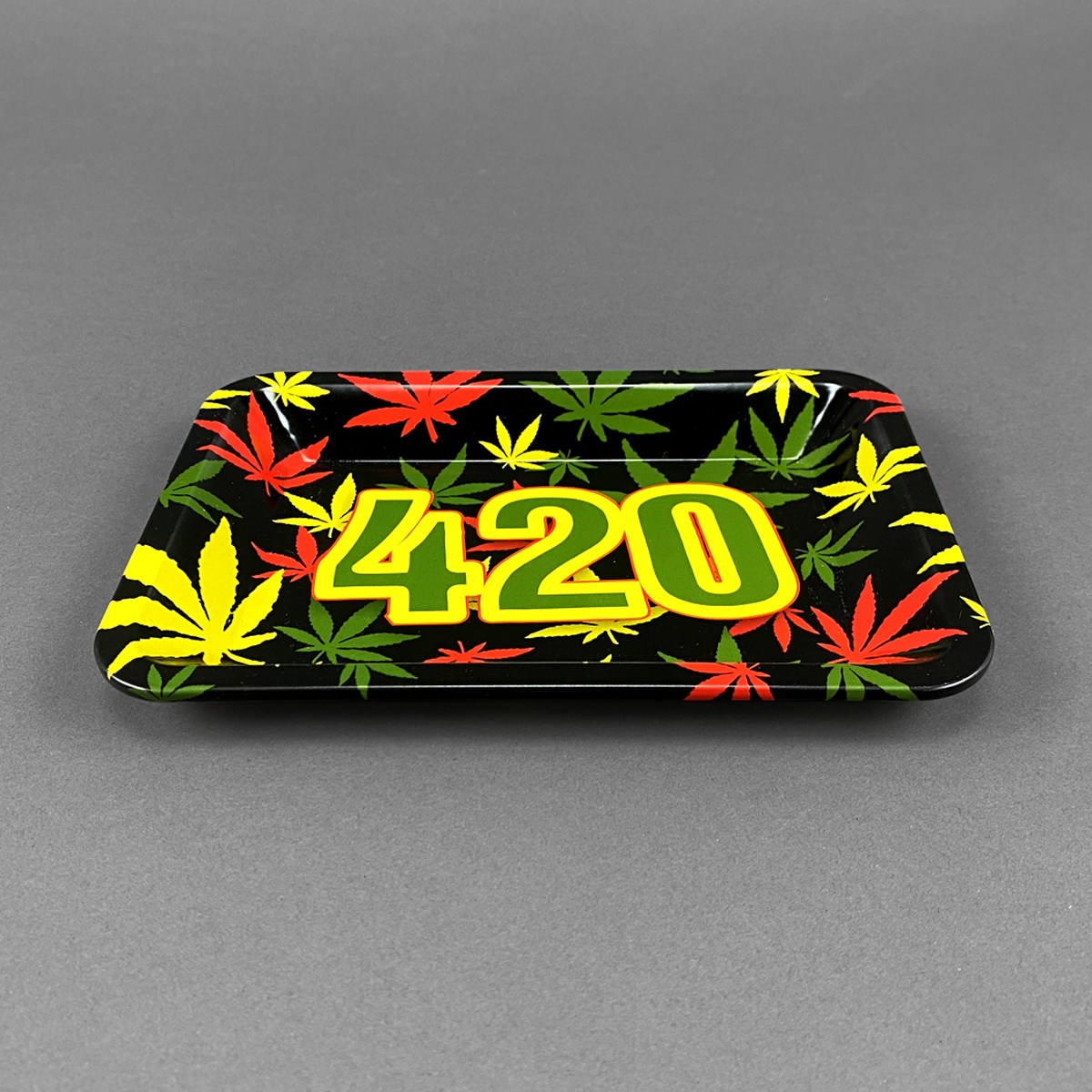Das Rolling Tray „420 Leaves“ ist nicht nur ein einfaches Utensil, sondern ein echtes Statement für jeden, der seine Vorbereitungen mit einem Hauch von Style und Farbe aufpeppen möchte. Mit seinem bunten Design, das lebendige Hanfblätter in Rot, Gelb und Grün präsentiert, bringt dieses Tray ein fröhliches Flair in jede Session und sorgt dafür, dass du bei deinen Aktivitäten immer im Trend liegst. Gefertigt aus robustem Metall, verspricht es nicht nur eine lange Lebensdauer, sondern auch eine widerstandsfähige Oberfläche, die dem täglichen Gebrauch problemlos standhält.